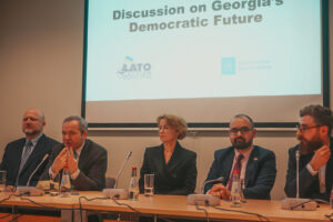 On 3 March 2025, LATO, in cooperation with the Baltic Centre for Media Excellence, organised the discussion “For a Democratic Future of Georgia” at the European Union House in Riga.